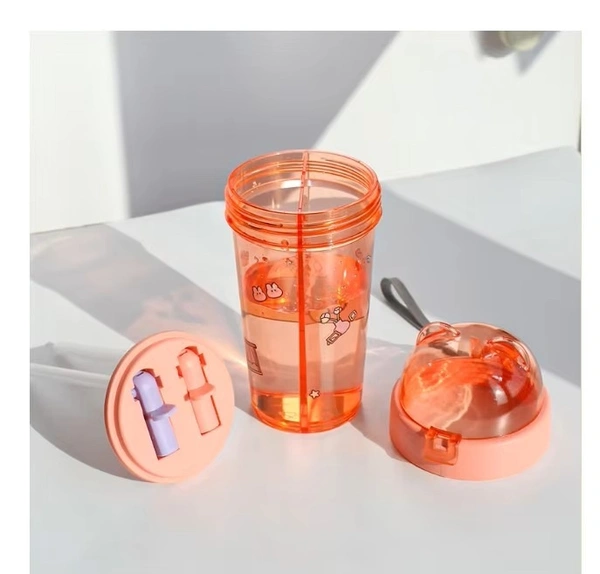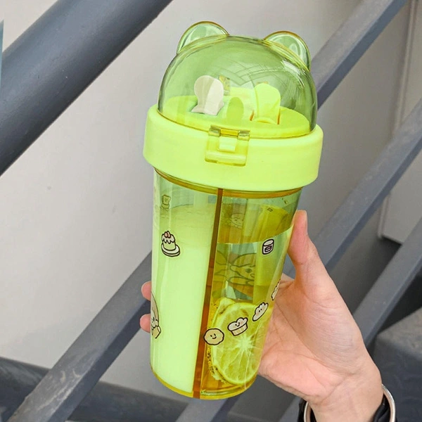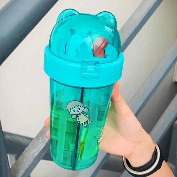 Dual Sipper Water Bottle with Flip Lid & Straw - 420ml (1 Piece, Random Color)