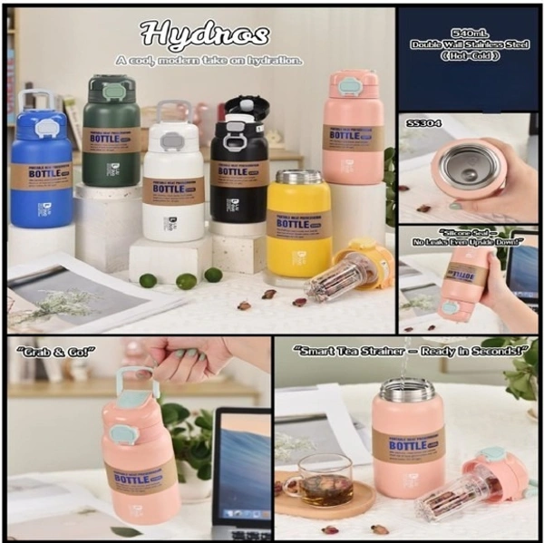 Insulated Stainless Steel Water Bottle with Tea Infuser & Carry Handle - 540ml (1 Piece, Random Color)
