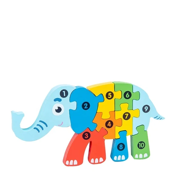 Colorful wooden puzzle set designed to support early learning through play.
