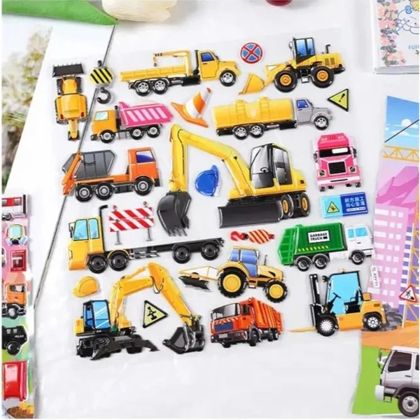 High-quality 3D puffy stickers featuring assorted vehicle designs with a fun raised texture.